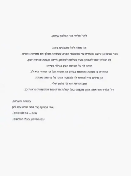 מודה לד״ר אלדד מור על הניתוח עליו חלמה שנים.